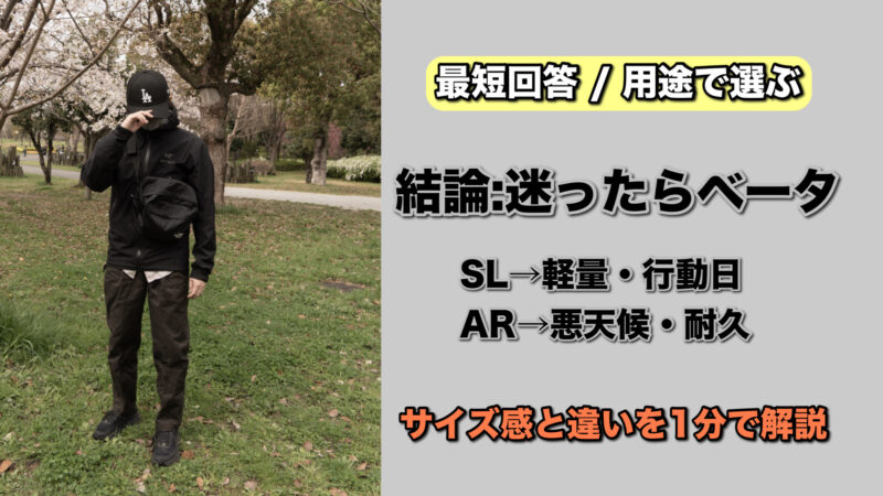 更新:本ページは「ベータのサイズ感とSL/ARとの違いを最短で把握する」用途に特化しました。着用写真多めの体験レビューは こちら。