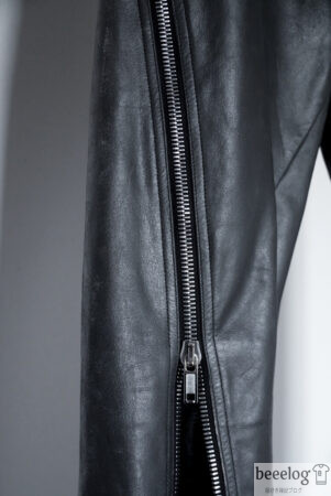 ベースはダブルライダースですが、胸のBauhausポケットや袖ジップ、フロント下のストラップなど、 Rickらしいギミックが詰め込まれた一着です。